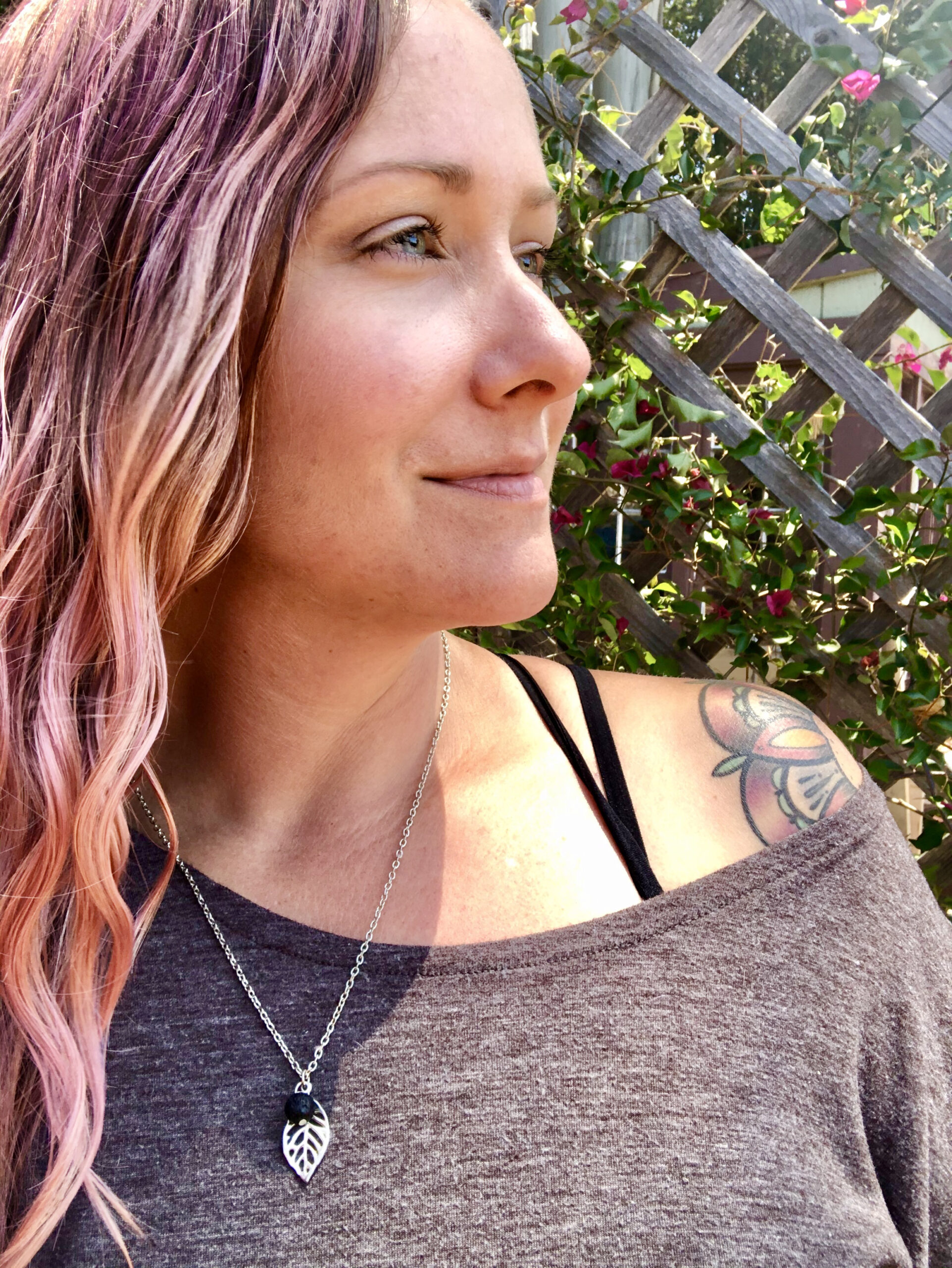 Gold or Silver Plated Leaf and lava stone necklaces make a stylish addition to your wardrobe. Lava is a protective stone that makes you feel secure and provides a sense of power. It also deepens your connection to the physical world and helps to relieve fear. The stone is porous so you can wear it alone, or apply a few drops of your favorite essential oils to smell throughout the day.