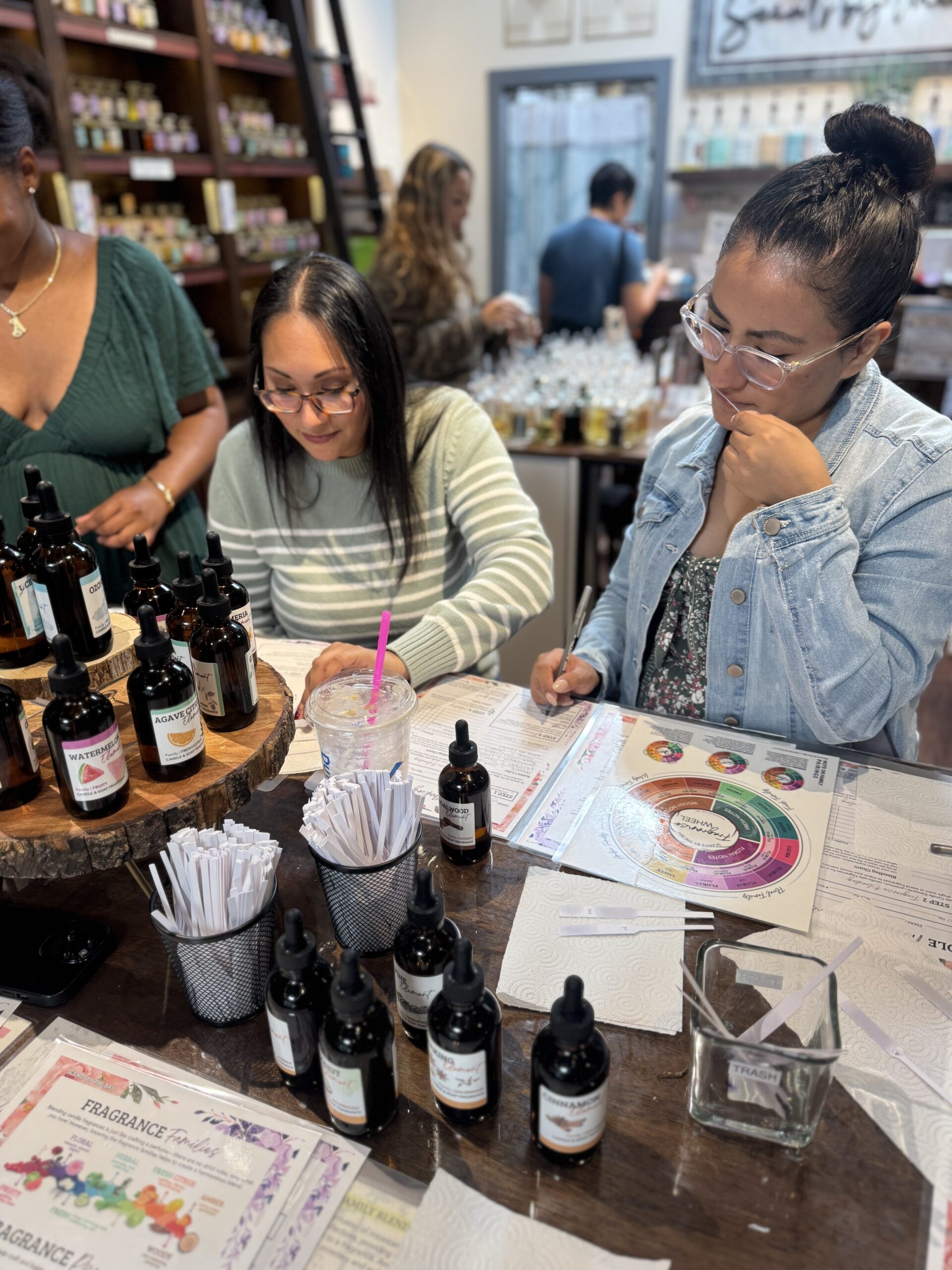 Create your own luxurious massage oil candle using Scents by the Bay’s proprietary blend of cosmetic-grade soy wax, organic shea butter, cocoa butter, and jojoba oil. This hands-on workshop guides you through blending candle and body-safe fragrance oils, exploring fragrance families, the fragrance pyramid and blending techniques to craft your perfect scent.